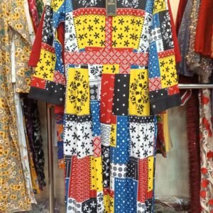 Blue-Yellow Mixed Printed Long Dress