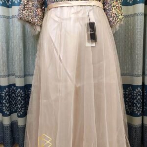 1 Colour Pleated Gown With Belt (Light Paste)