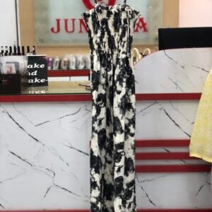 Floral Pattern Sling Dress (White Black)