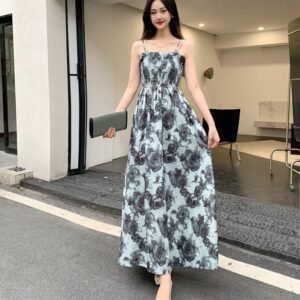 Floral Pattern Sling Dress (Ash Black)