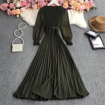 1 Colour Pleated Dress With Pletaed Sleeve (Black)
