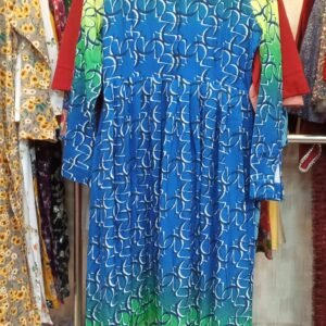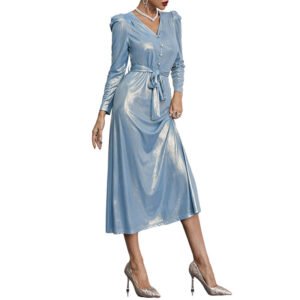 1 Colour Pleated Dress With Pletaed Sleeve ( Ocean Blue)
